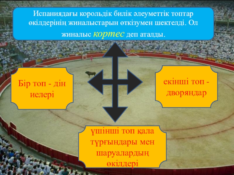 Слайд 13Испаниядағы корольдік билік әлеуметтік топтар өкілдерінің жиналыстарын өткізумен шектелді. Ол жиналыс