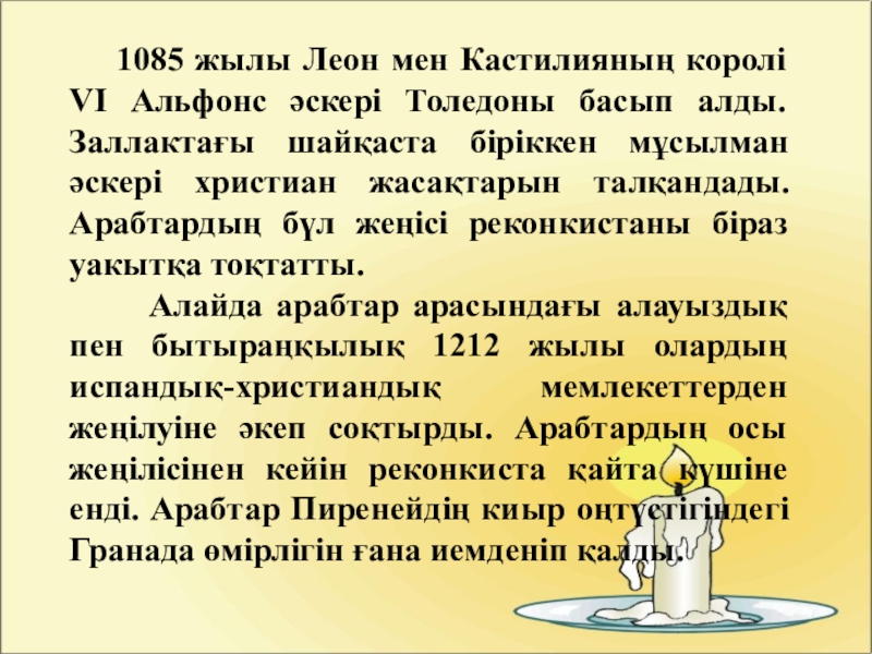 Слайд 11 1085 жылы Леон мен Кастилияның королі VI Альфонс