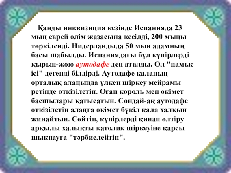 Слайд 19 Қанды инквизиция кезінде Испанияда 23 мың еврей өлім жазасына
