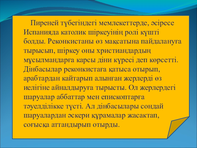 Слайд 17Ислам корольдері өз мемлекетін таза христиандар еліне айналдыру мақсатын көздеді. Дінбасылардың