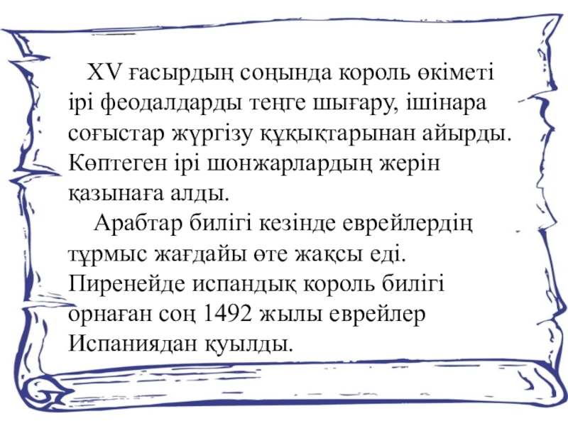 Слайд 14 XV ғасырдың соңында король өкіметі ірі феодалдарды теңге шығару,