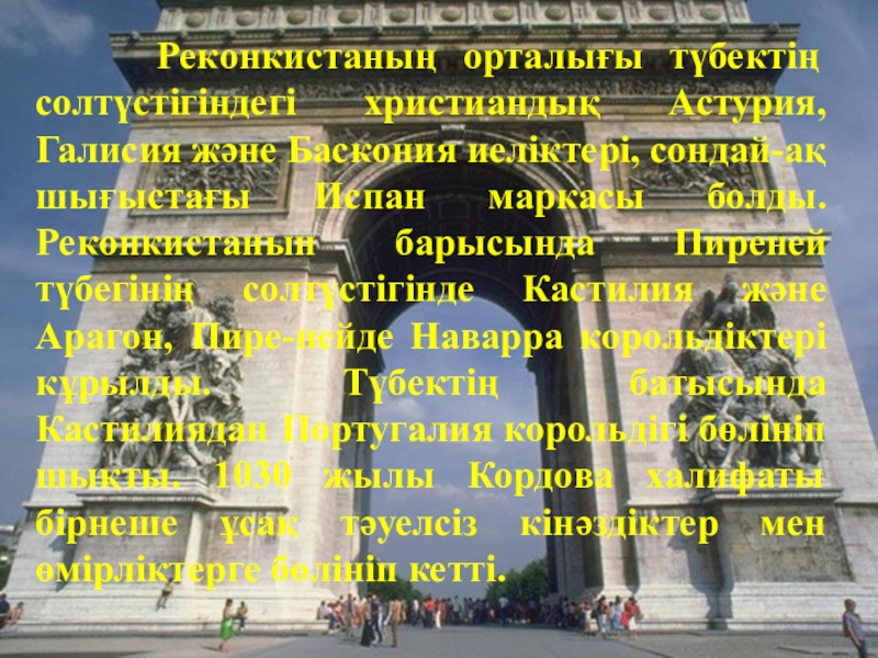 Слайд 10 Реконкистаның орталығы түбектің солтүстігіндегі христиандық Астурия, Галисия және