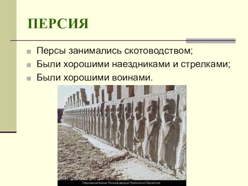 ПЕРСИЯПерсы занимались скотоводством;Были хорошими наездниками и стрелками;Были хорошими воинами.