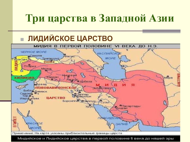 Три царства в Западной АзииЛИДИЙСКОЕ ЦАРСТВОВ 7 в до н э здесь начали чеканить монету из сплава