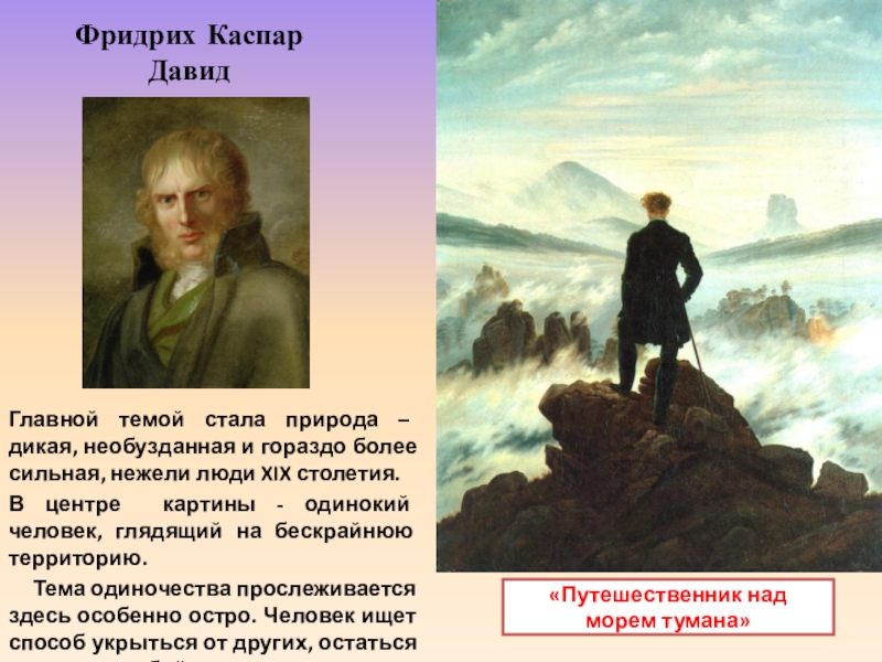 В центре картины - одинокий человек, глядящий на бескрайнюю территорию.