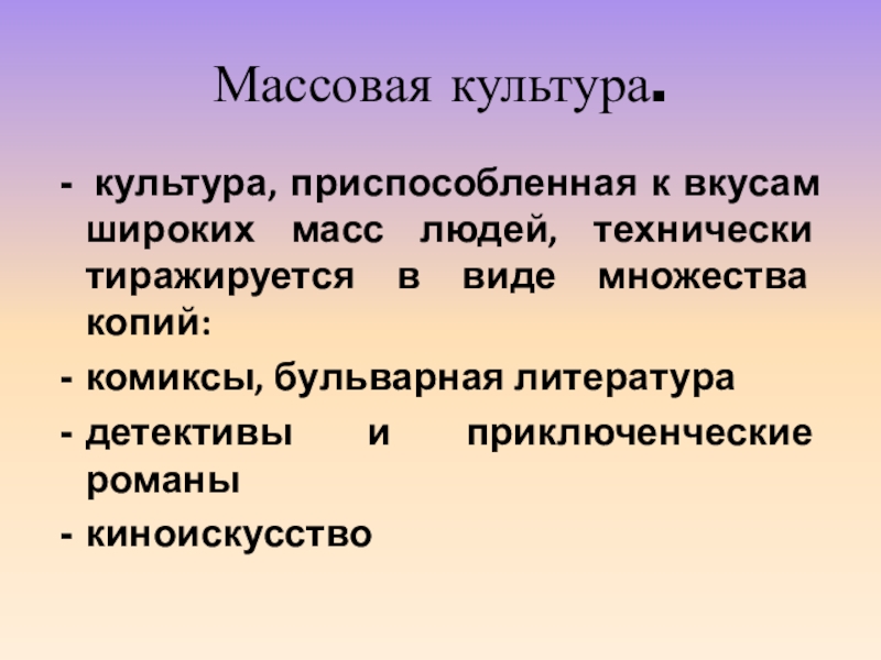 культура, приспособленная к вкусам широких масс людей, технически тиражируется в