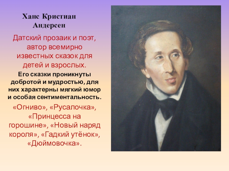 Датский прозаик и поэт, автор всемирно известных сказок для