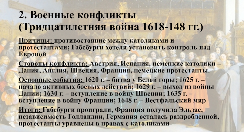 Слайд 52. Военные конфликты (Тридцатилетняя война 1618-148 гг.)