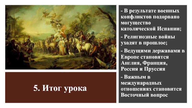 - Ведущими державами в Европе становятся Англия, Франция, Россия и Пруссия