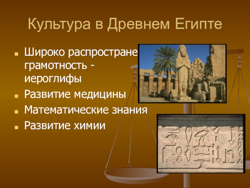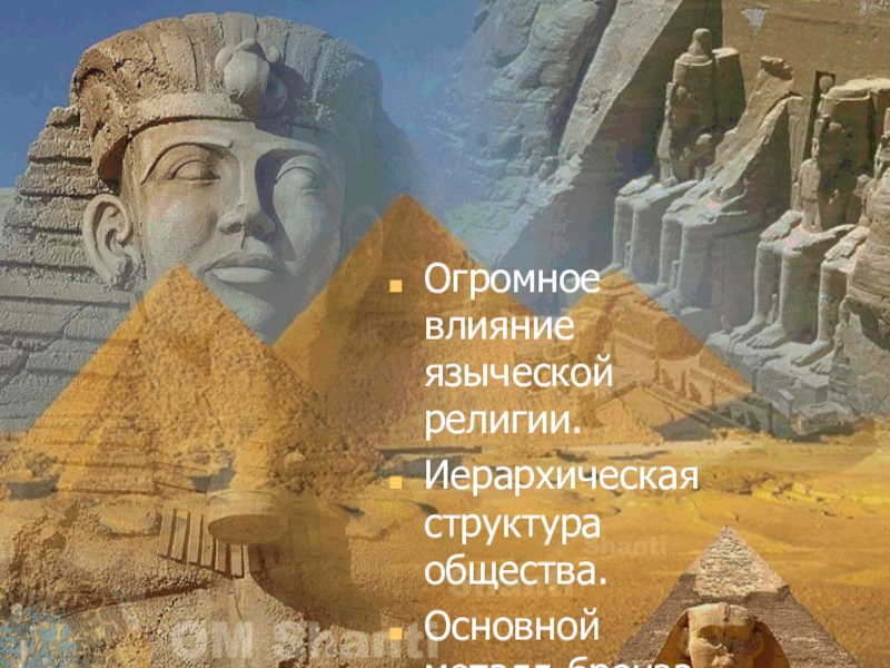 - Бог Солнца, Осирис - Бог земледелия и царства мертвых, Хаппи - Бог Нила.