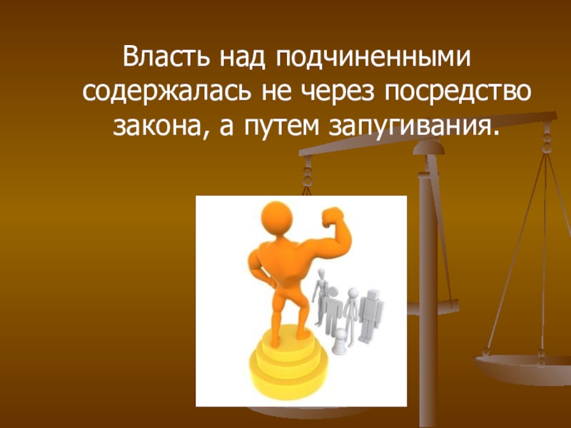 Власть над подчиненными содержалась не через посредство закона, а путем запугивания.