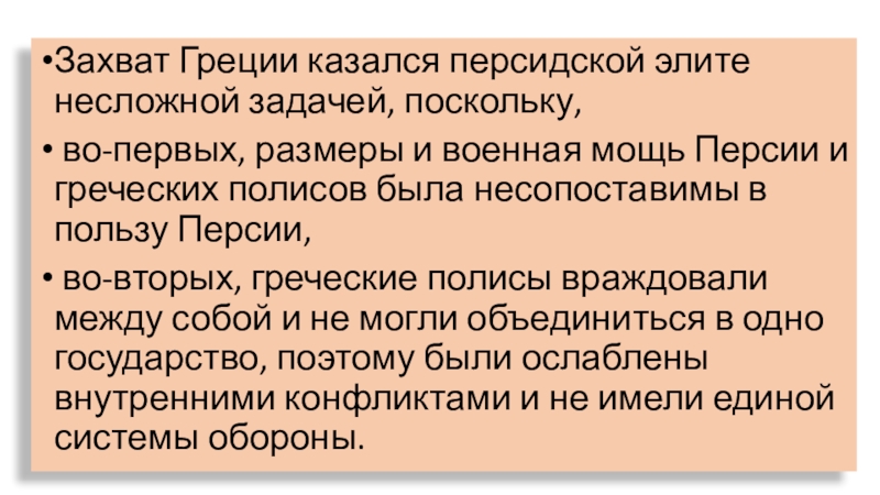 Слайд 6Захват Греции казался персидской элите несложной задачей, поскольку,