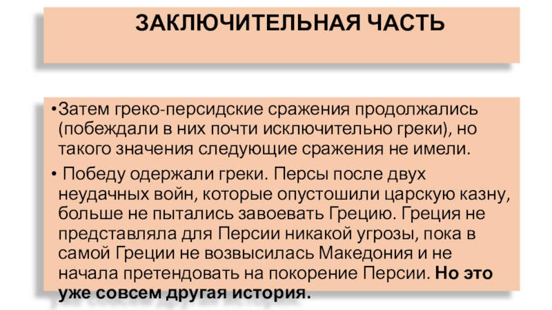 греко-персидские сражения продолжались (побеждали в них почти исключительно греки), но такого значения следующие сражения не имели.