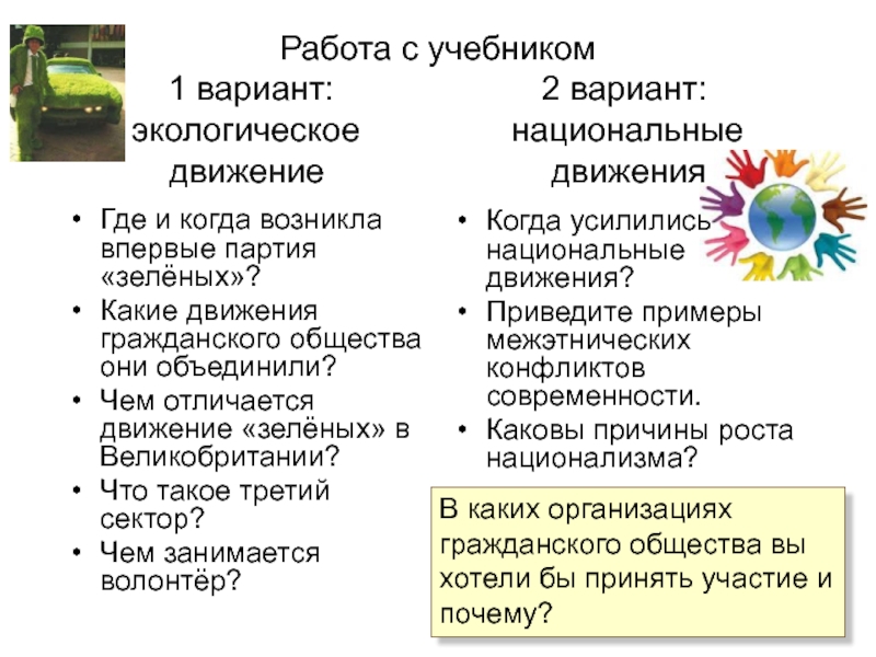В каких организациях гражданского общества вы хотели бы принять участие и почему?