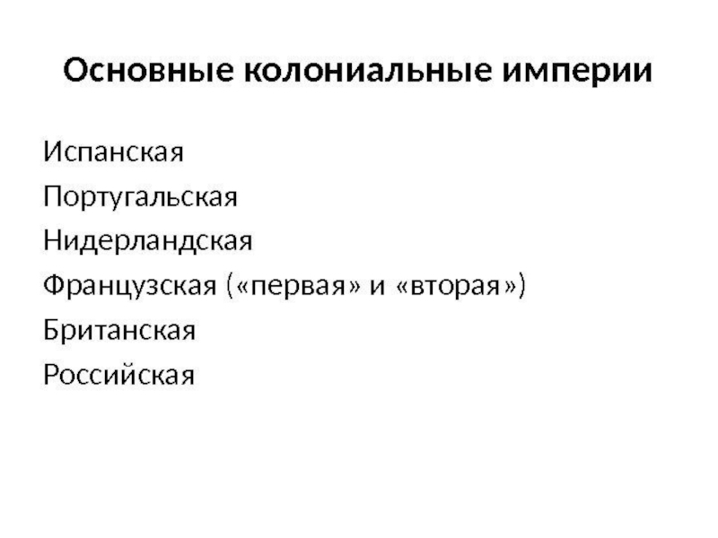 Колониализм     Колониализм — система господства группы развитых стран (метрополий) над остальным миром в XVI—XX веках.