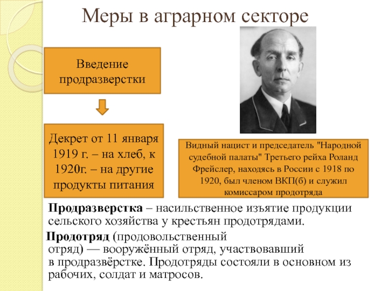 Видный нацист и председатель "Народной судебной палаты" Третьего рейха Роланд Фрейслер, находясь в России с 1918 по 1920, был членом ВКП(б) и служил комиссаром продотряда