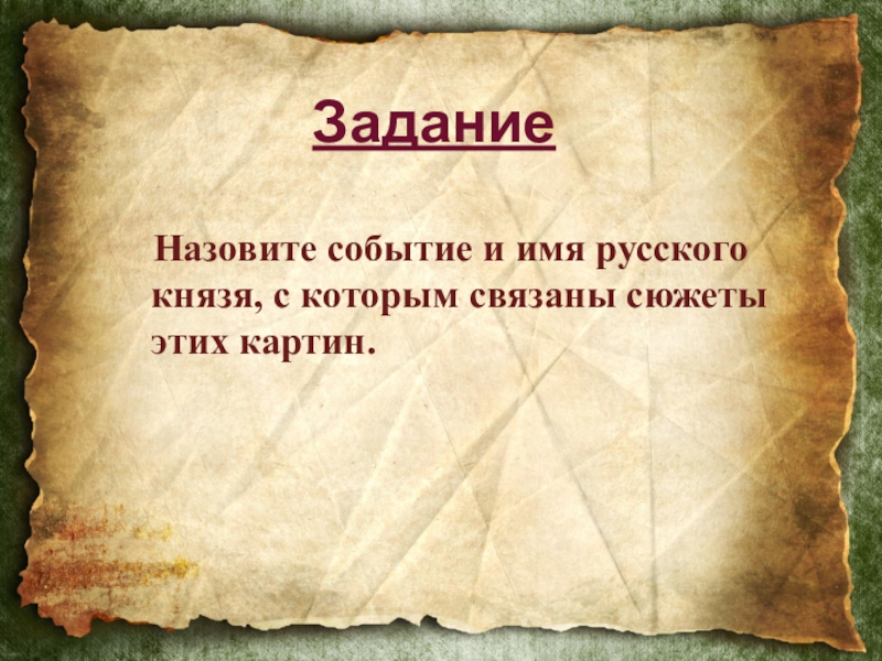 Слайд 39Назовите событие и имя русского князя, с которым связаны сюжеты этих