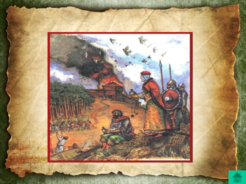 Слайд 35«…И когда стало смеркаться, своим воинам пустить голубей и воробьев.