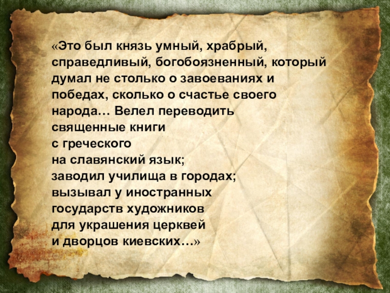 Слайд 36«Это был князь умный, храбрый, справедливый, богобоязненный, который думал не столько