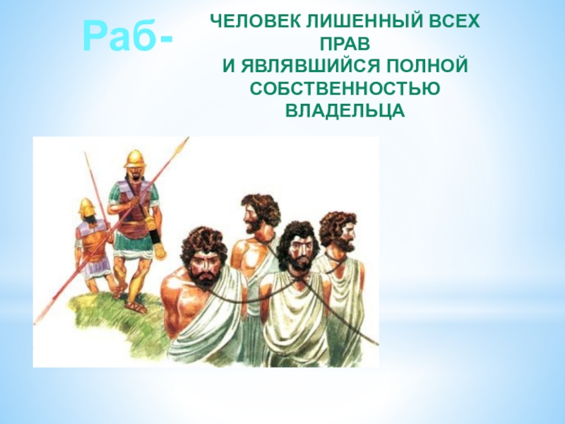 Раб. А я вот знаю, что такое свобода. Раньше я перевозил грузы по морю, но однажды нас настигли пираты. Они захватили судно, некоторых убили, а я попал в плен.
