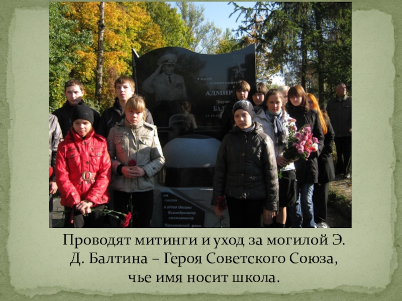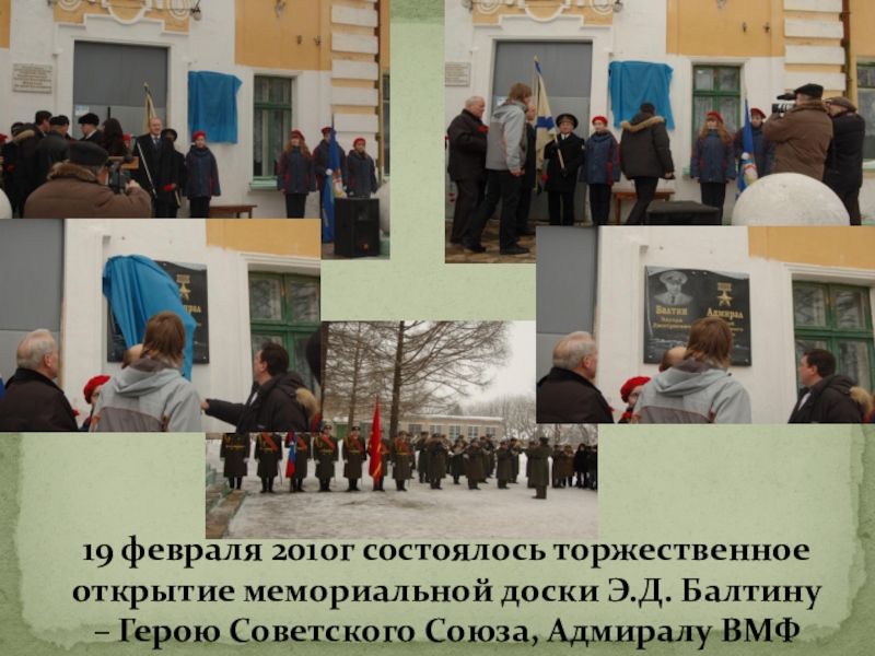 19 февраля 2010года состоялось торжественное открытие мемориальной доски Э.Д. Балтину – герою Советского Союза, адмиралу ВМФ.