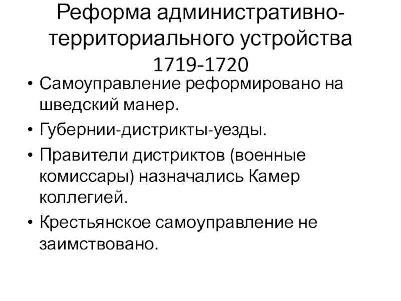 Слайд 11Реформа административно-территориального устройства 1719-1720