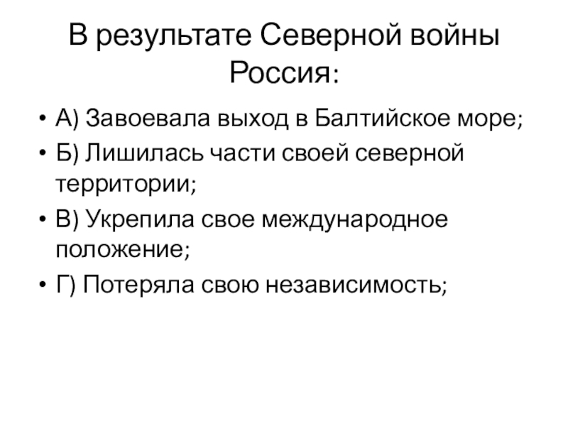 Слайд 8В результате Северной войны Россия: