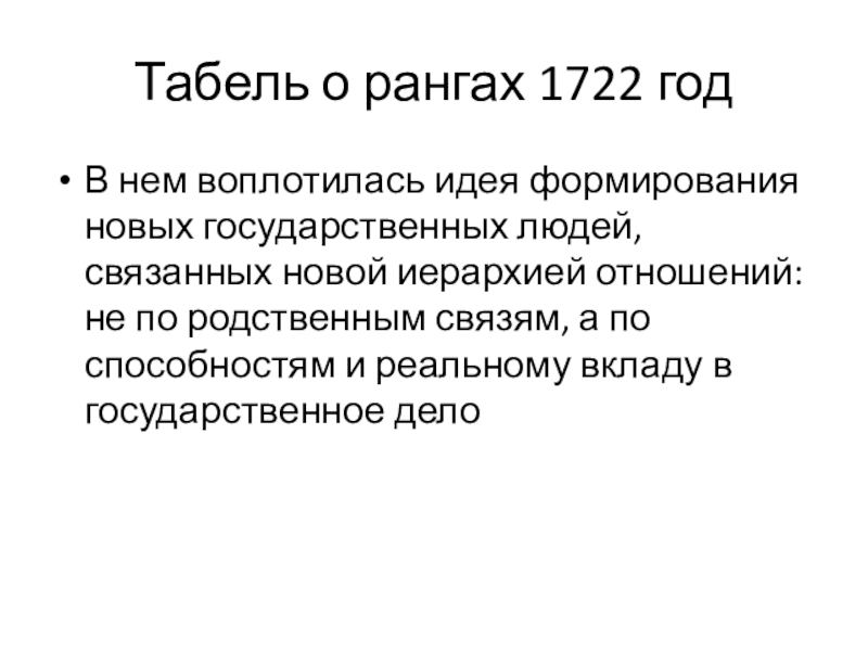 Слайд 18Табель о рангах 1722 год