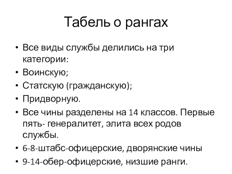 Слайд 19Табель о рангах