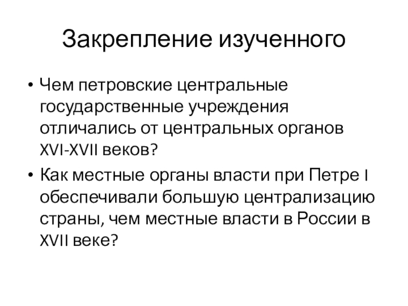 Чем петровские центральные государственные учреждения отличались от центральных органов XVI-XVII