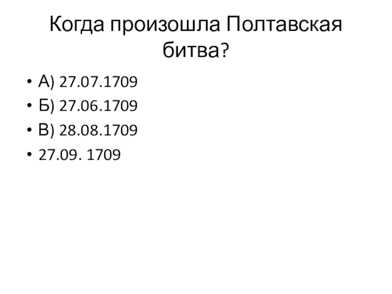 Слайд 7Когда произошла Полтавская битва?