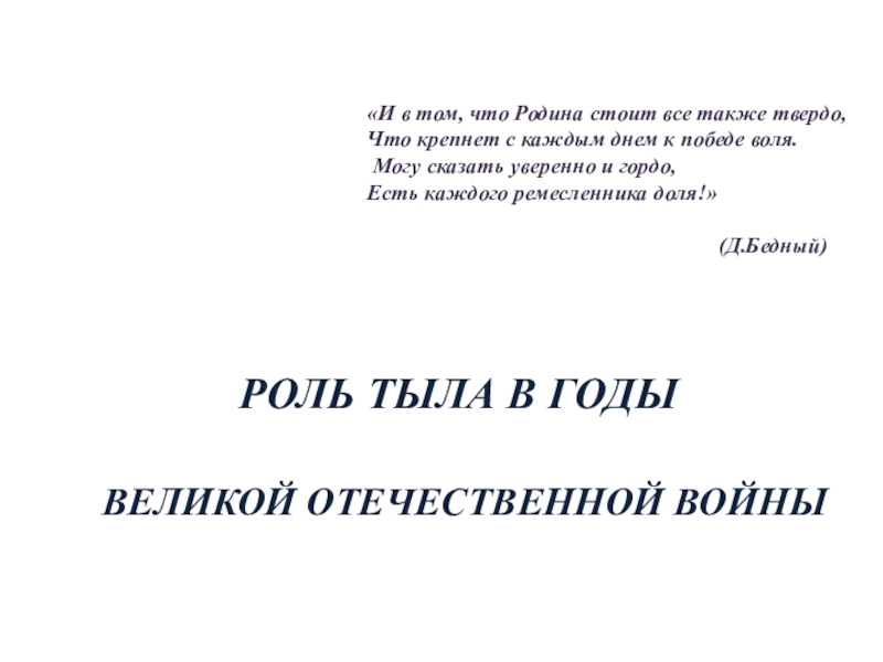 РОЛЬ ТЫЛА В ГОДЫ