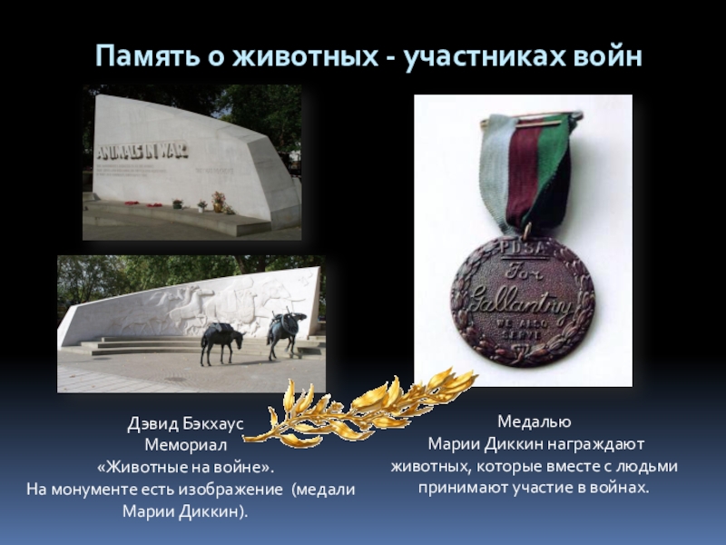 Марии Диккин награждают животных, которые вместе с людьми принимают участие в войнах.