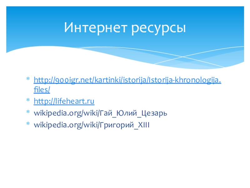 http://900igr.net/kartinki/istorija/Istorija-khronologija.files/http://lifeheart.ruwikipedia.org/wiki/Гай_Юлий_Цезарьwikipedia.org/wiki/Григорий_XIIIИнтернет ресурсы