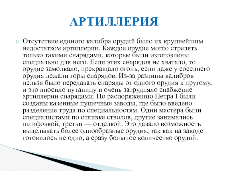 Слайд 17Отсутствие единого калибра орудий было их крупнейшим недостатком артиллерии. Каждое орудие