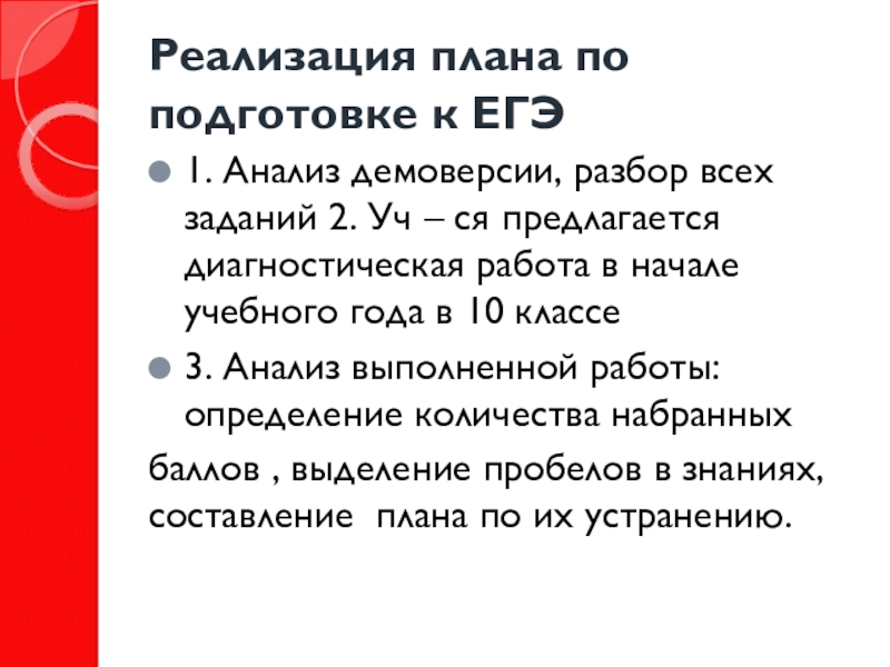 Слайд 5Реализация плана по подготовке к ЕГЭ