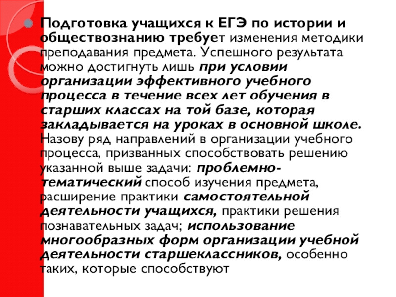 Слайд 25Подготовка учащихся к ЕГЭ по истории и обществознанию требует изменения методики