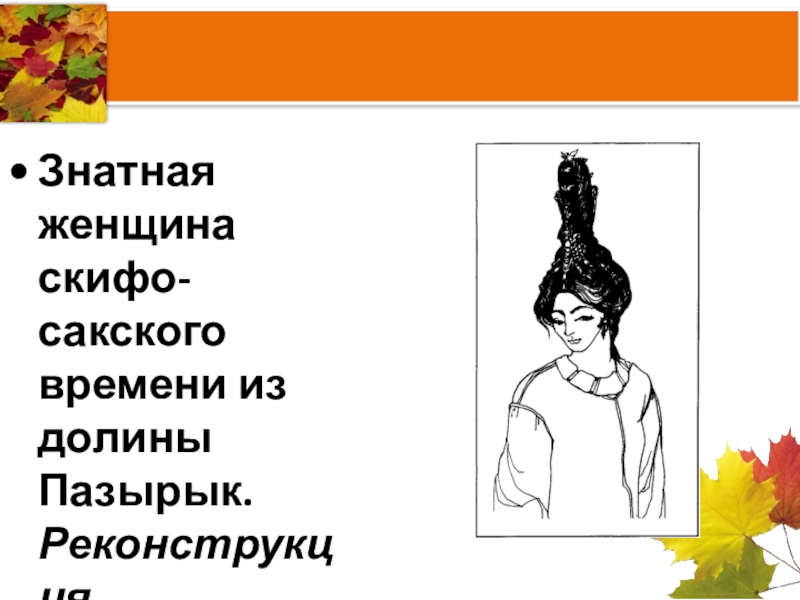 Слайд 7Знатная женщина скифо-сакского времени из долины Пазырык. Реконструкция