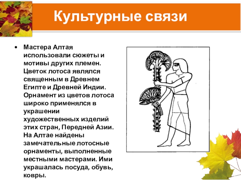 Мастера Алтая использовали сюжеты и мотивы других племен. Цветок лотоса