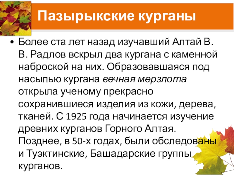 Слайд 6Ценность открытых на Алтае древних захоронений