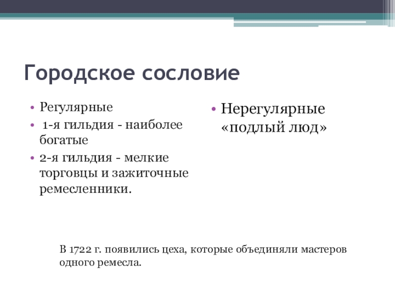 В 1722 г. появились цеха, которые объединяли мастеров одного ремесла.