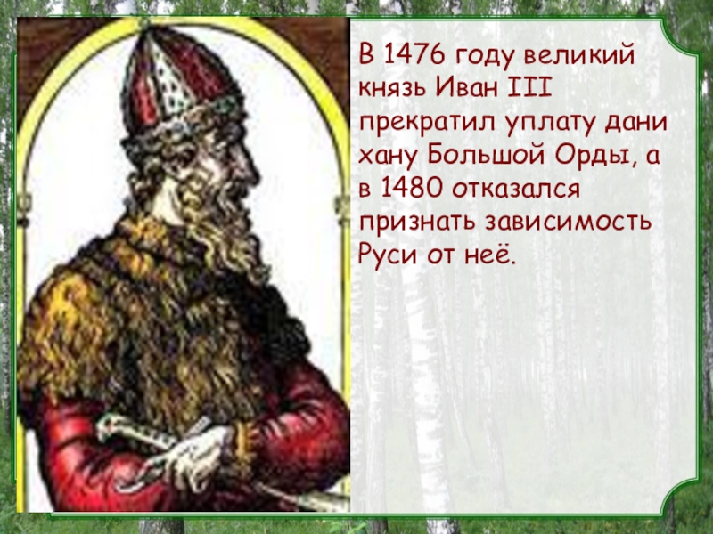 Слайд 9В 1476 году великий князь Иван III прекратил уплату дани хану