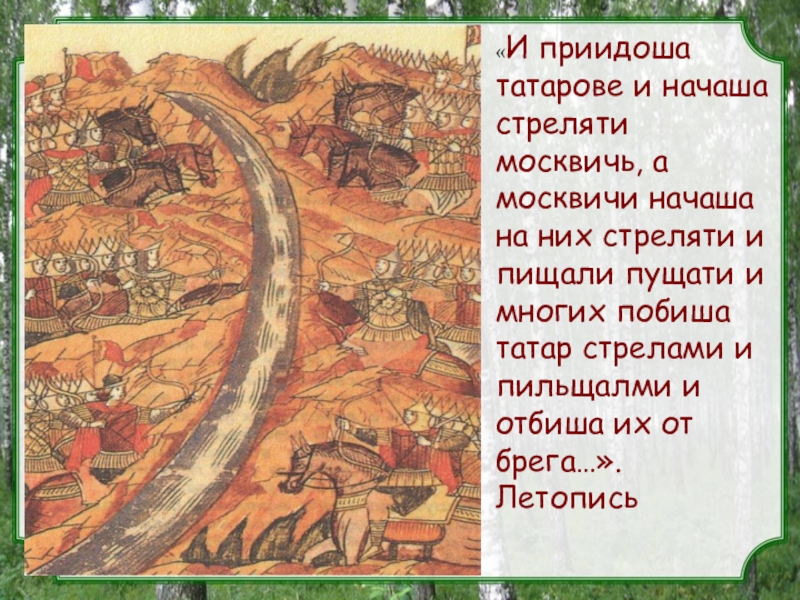 Слайд 13«И приидоша татарове и начаша стреляти москвичь, а москвичи начаша на