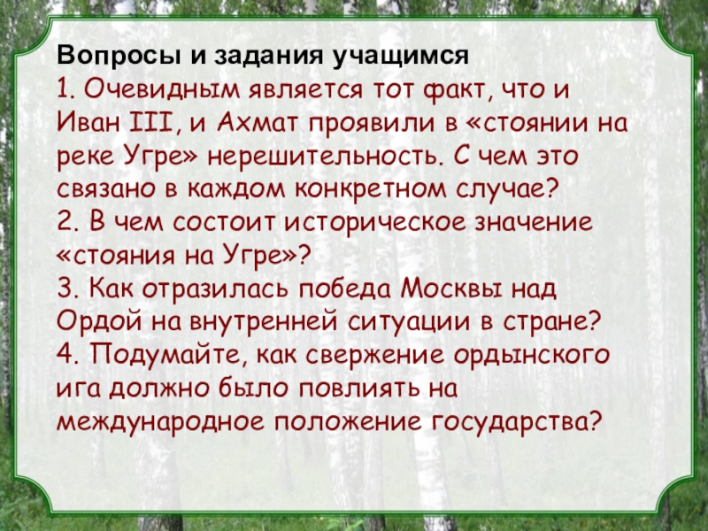 Вопросы и задания учащимся