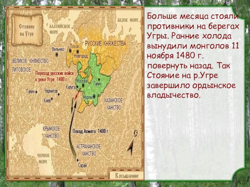 11 ноября 1480 г. повернуть назад. Так Стояние на р.Угре завершило ордынское владычество.