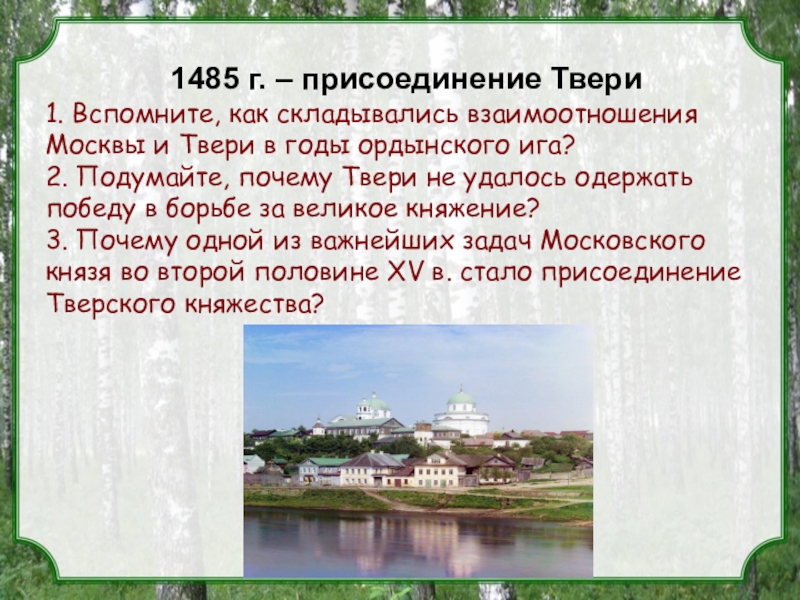 3. Почему одной из важнейших задач Московского князя во второй половине XV в. стало присоединение Тверского княжества?