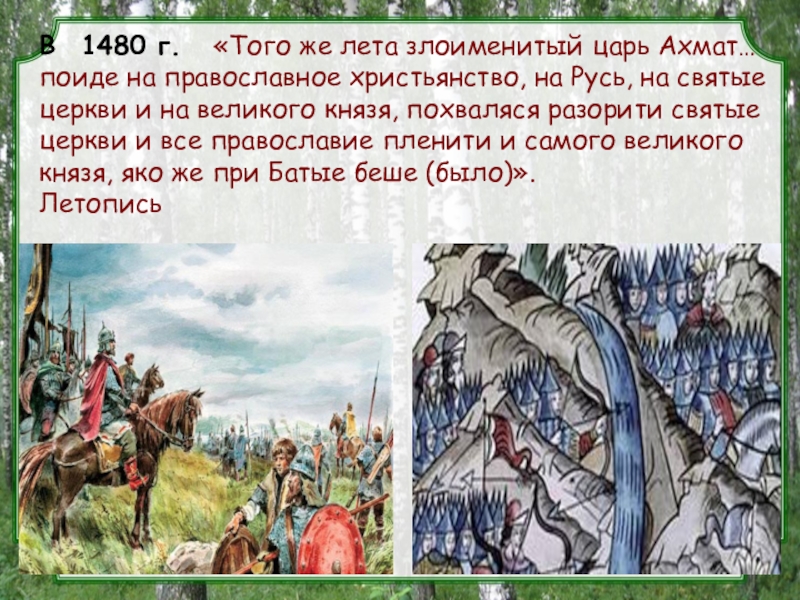 Слайд 11В 1480 г. «Того же лета злоименитый царь Ахмат… поиде на православное