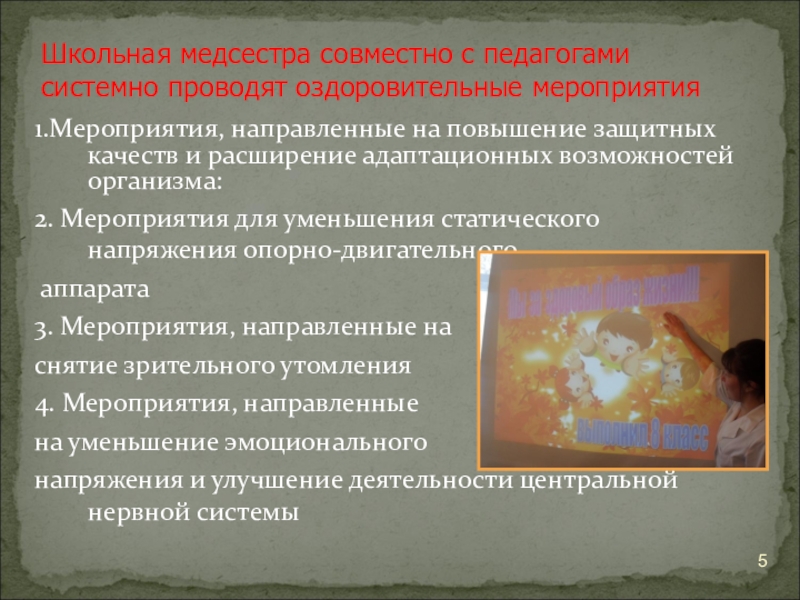 Школьная медсестра совместно с педагогами системно проводят оздоровительные мероприятия