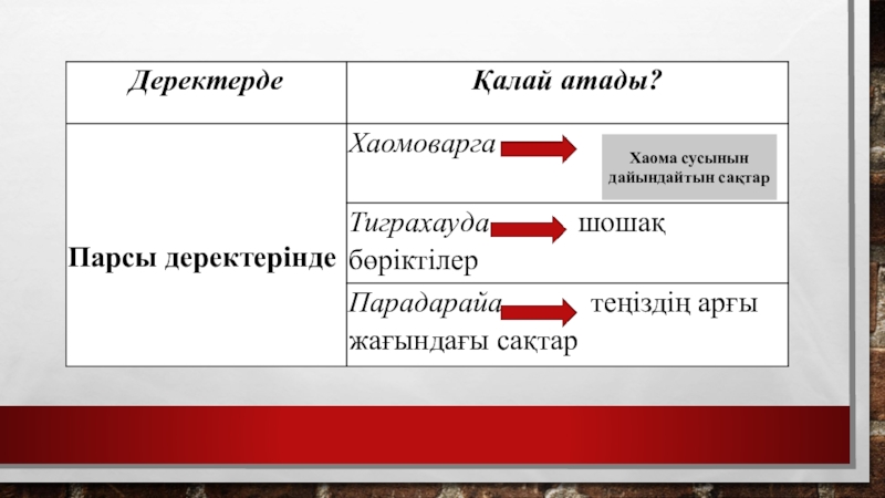 Слайд 8Хаома сусынын дайындайтын сақтар