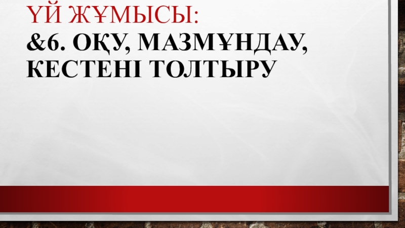Слайд 18Үй жұмысы: &6. оқу, мазмұндау, кестені толтыру